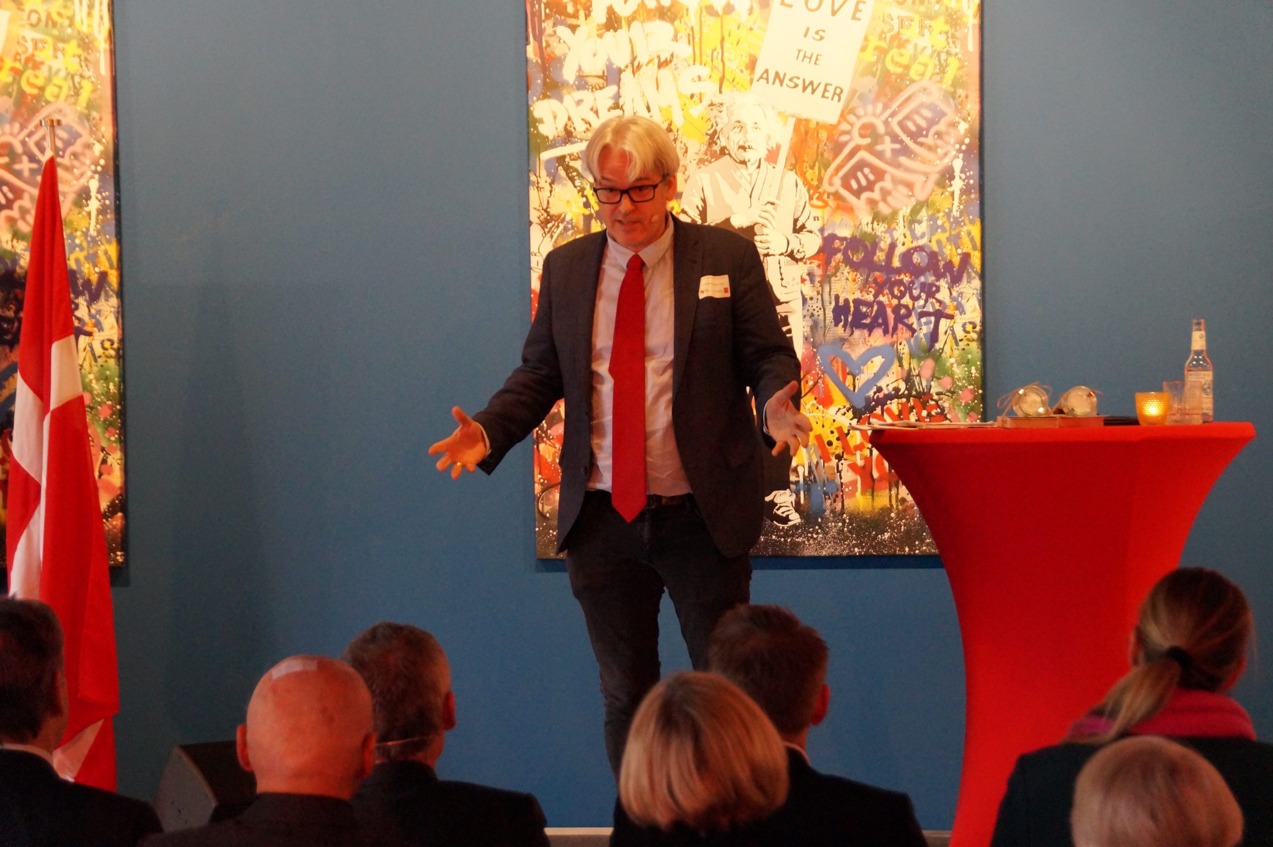 Begrüßung Peter Moll, Königlich Dänischer Honorarkonsul Grußwort Dr. Caroline Weber, Vorsitzende der Deutsch-Dänischen Gesellschaft Vortrag Prof. Dr. Thomas Wegener Friis, Syddansk Universitet „Eine historische Reise durch die Sicherheitspolitik des Ostseeraums“ Vortrag Thomas Østrup Møller, Botschafter des Königreichs Dänemark „Freundschaft, Ratspräsidentschaft und die Frage nach (inter)nationaler Sicherheit“
